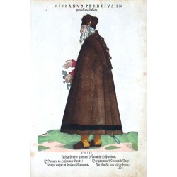 Amman, Jost (1539-1591). Španělsko. "Hispanus Plebeius in quotidiano habitu. Also gehet der gemeine Mann in Hispanien". Pův., skvostně staře kol. dřevořez, J. Amman z 1. vyd. jeho díla "Habitus praecipuorum populorum ... Trachtenbuch ...". Vyd. H. Weigel v Norimberku, 1577. 30,5:20 cm.