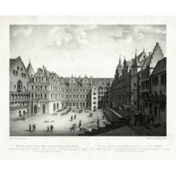Hildesheim. "Hildesia. Hildesheim". Pův., staře kolorovaná mědirytina. Podle F. B. Wernerovy kresby ryl J. G. Ringle (také Ringlin). Vydal M. Engelbrecht v Augsburku, ca. 1740. S ornamentální titulní kartuší, kartuší s erbem a vysvětlivkami pod obrázkem. 19:30 cm.