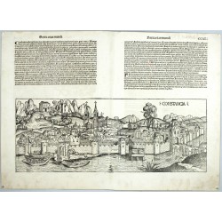 Regensburg. "Ratisbona ... Regenspurg". Pův., staře kolorovaná mědirytina. Podle F. B. Wernerovy kresby ryl J. G. Ringle (také Ringlin). Vydal M. Engelbrecht v Augsburku, ca. 1740. S dekorativní titulní kartuší, kartuší s erbem a vysvětlivkami pod obrázkem. 19:30,5 cm.