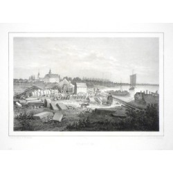 "Magdeburg". Pův. litografie podle vlastní kresby, C. W. Arldt. Tiskl F. Weider, ca. 1840-50. Se čluny na Labi v popředí. 18:23 cm.