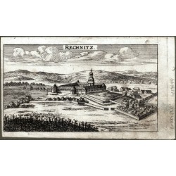 Rechnitz. "Rechnitz". Pův. mědirytina z: G. Krekwitz "Totius Regni Hungariae ... Descriptio". Vyd. L. Loschge ve Frankfurtu nad Moahanem a Norimberku, 1686. S rytým titulem. 8,3:14,5 cm.