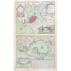 Antily."Neu und verbesserter Plan der St. u. Hafens Havana auf der Ins. Cuba" and "Neu und verbesserter Plan des Hafens von Carthagena in America". Copper-engraving published by Homann's Heirs, 1739. Original contemporary colouring. With 2...