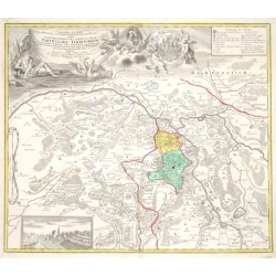 "Canton Appenzell sive pagus Helvetiae Abbatiscellanus". Copper-engraving published by Homann's Heirs, 1768- after G. Walser's map of the region. Original contemporary colouring. With ornamental and heraldic title-cartouche and inset panoramatic...
