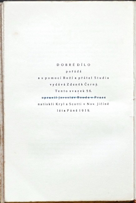 Bloy, Léon (1846-1917). "Můj Denník pokračováním k Žebráku Nevděčníku 1896-1900". Stará Říše na Moravě: Zdeněk Černý, 1919. Ed. 'Dobré Dílo', sv. 56. Větší 8°. (5), 239, (3) str. OBrož.