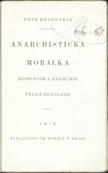 Obálka mírně omšelá, uvnitř dobré. Na titulním listu rkp. exlibris bez souvislostí. - Petr Kropotkin (9. 12. 1842, Moskva - 8. 2. 1921, Dmitrov) byl ruský revolucionář a publicista, geograf a geolog a zároveň jeden z předních ruských anarchistů a jeden z prvních zastánců a teoretiků anarchokomunismu.