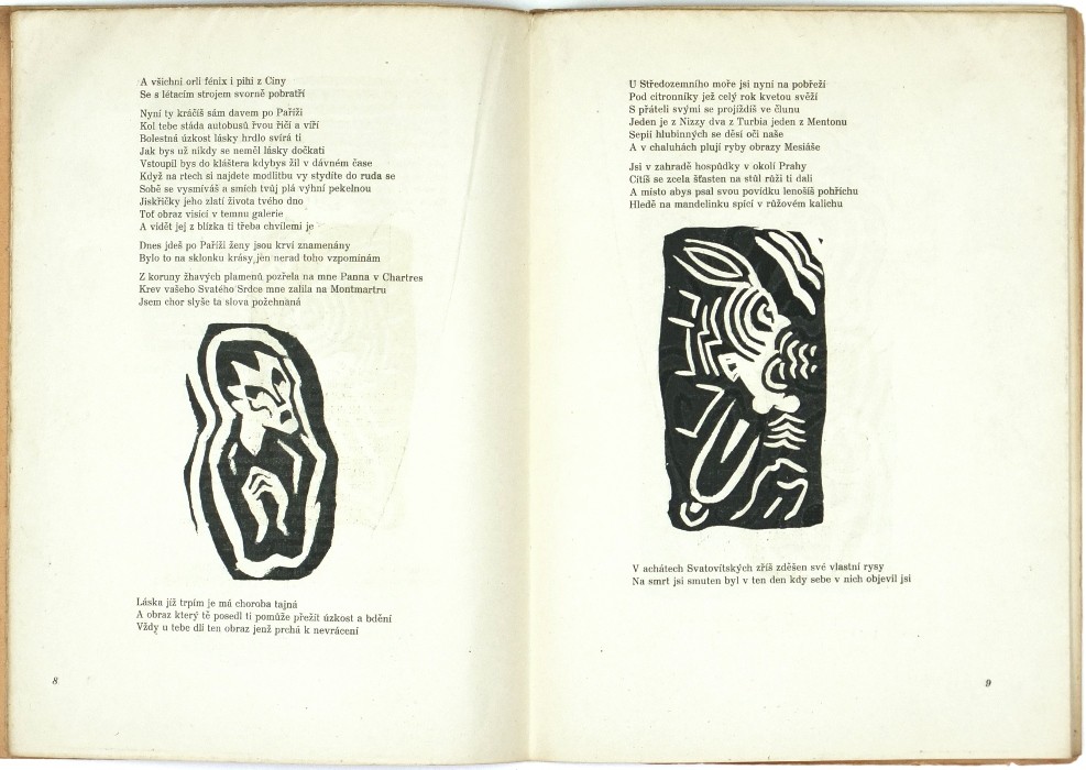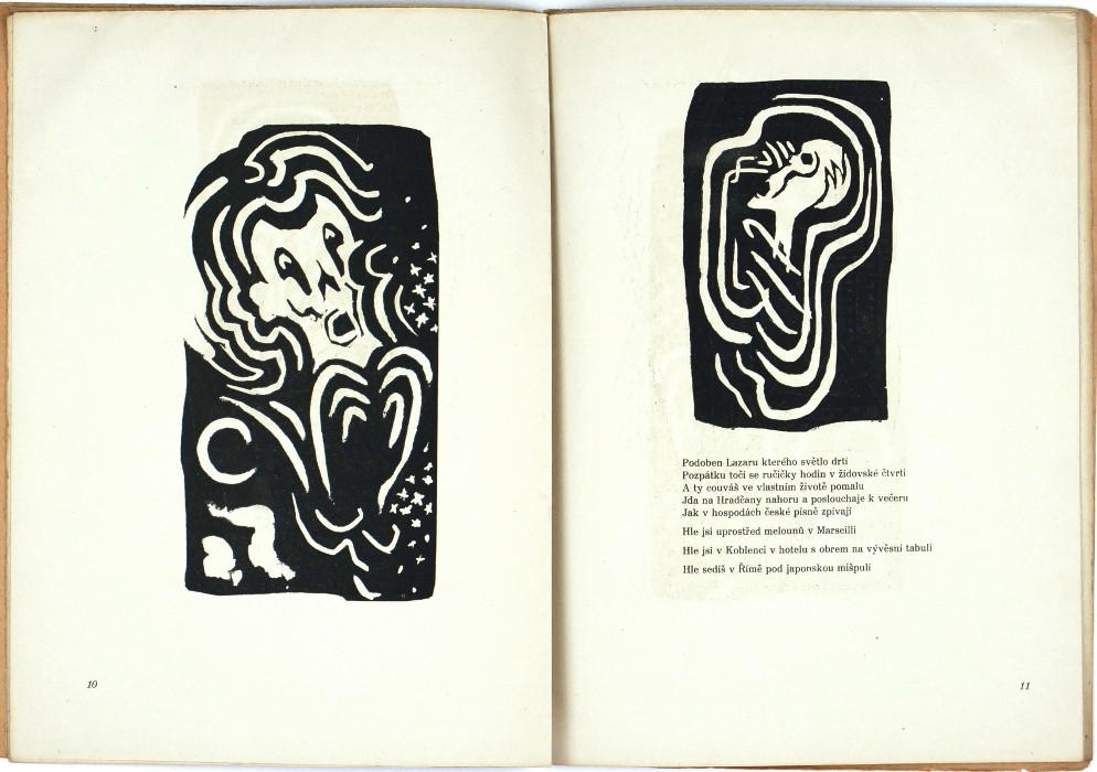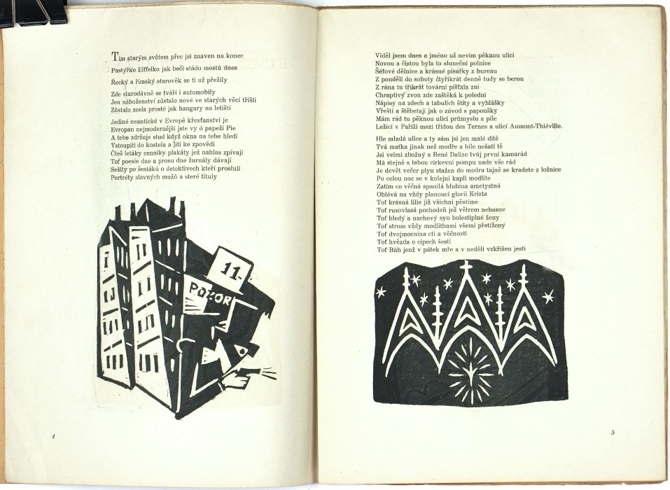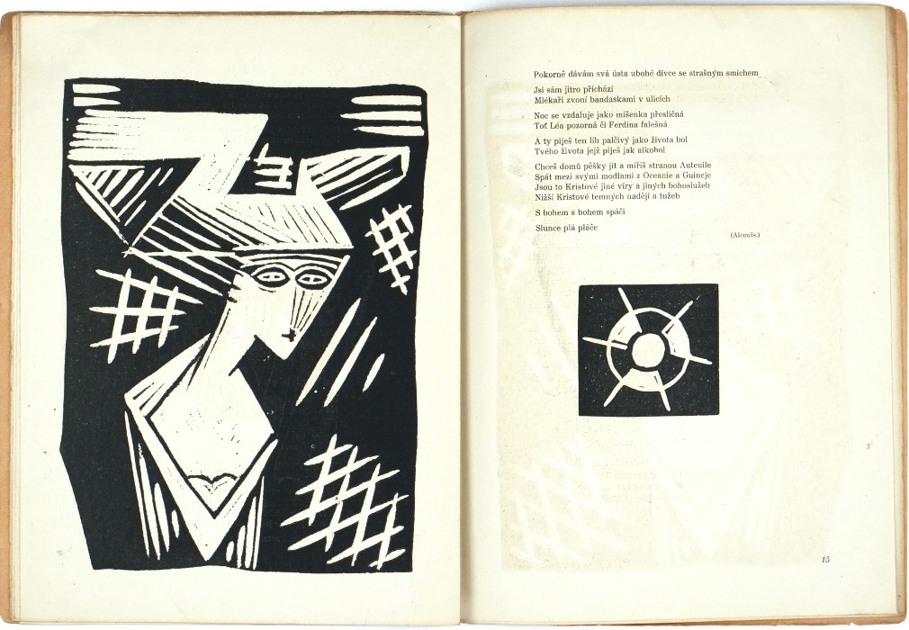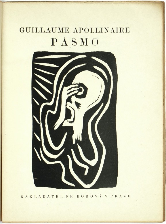 (Josef Čapek). Apollinaire, Guillaume. "Pásmo". Praha: Borový, 1919, vytiskla Politika. Vydáno v 500 výtiscích. 4°. 15, (2) str. s 15 původními linoryty J. Čapka. Přeložil a doslov napsal Karel Čapek. OIlBrož.