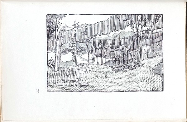 Váchal, Josef (1884-1969). "Malíř na frontě. Soča a Italie 1917-18". Praha: A. Macková jako soukromý tisk, 1929. 4°. 403, (7) str. se 42 pův. dřěvoryty, 1 linorytem a 4 fotoreprodukcemi. V tiráži autorovo rkp. věnování. Výtisk čís. 282/300 na dřevaprostém papíře (celkový náklad byl 457 výtisků). OIllBrož. (pův. dřevoryt, J. Váchal).