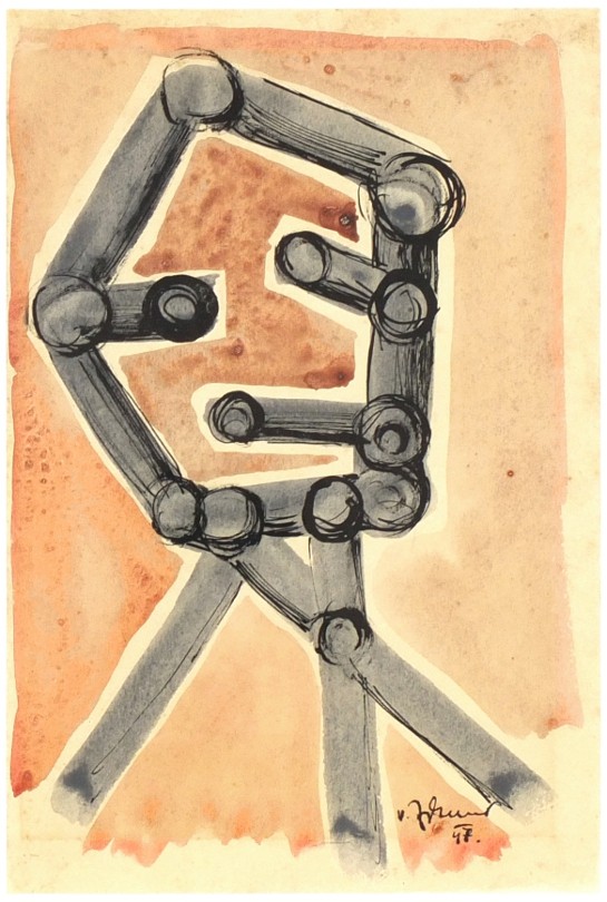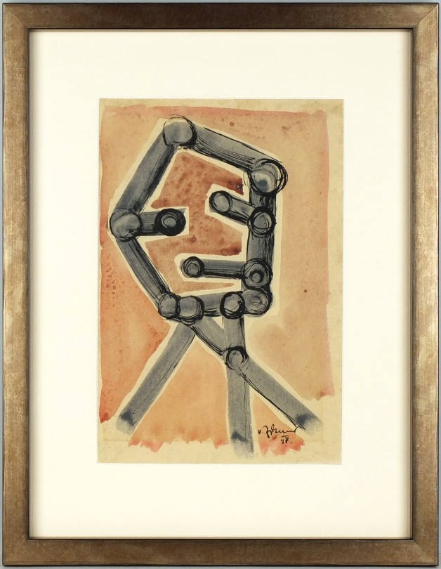 Zykmund, Václav. Původní kresba tuší a malba akvarelem, 1947. Tuší signováno a datováno vpravo dole. 29:19,5 cm (výřez pasparty).