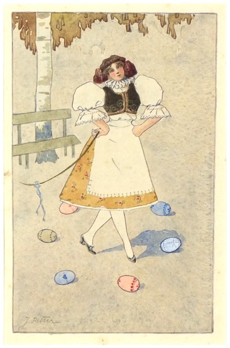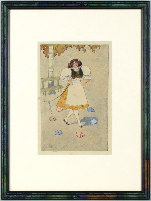 Pitter, Josef. Velikonoce - návrh na pohlednici. Původní akvarel, ca. 1905. Signováno perem vlevo dole. 21:13,5 cm.