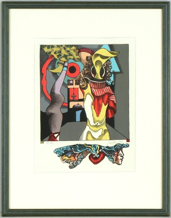 Liesler, Josef (1912-2005). Bez názvu. Původní barevná litografie, 1994. Tužkou signováno, datováno a číslováno (38/207). 21,5:15,5 cm.