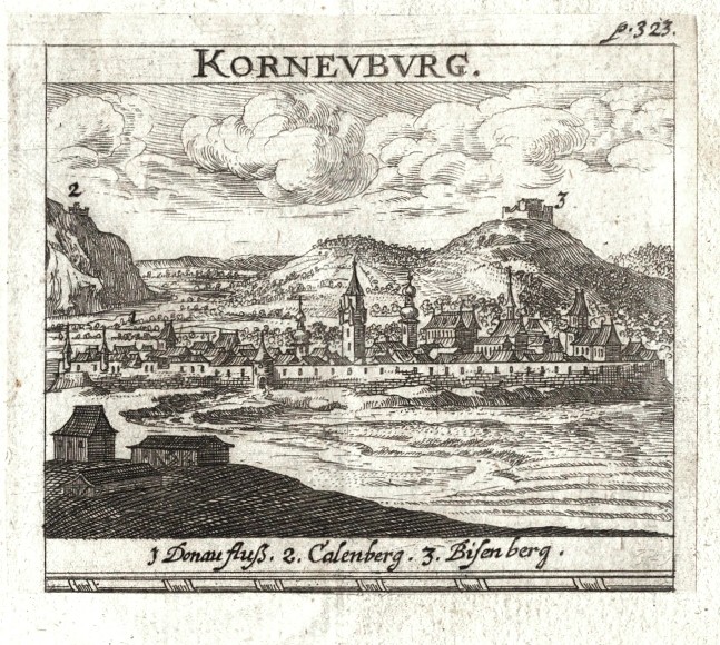 Korneuburg. "Korneuburg". Pův. mědirytina z: G. Krekwitz "Totius Regni Hungariae ... Descriptio". Vyd. L. Loschge ve Frankfurtu nad Mohanem a Norimberku, 1686. S rytým titulem. 7,5:8,7 cm.