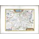 Paderborn. "Paderbornensis Episcopatus Descriptio Nova". Původní, staře kolorovaný mědiryt. Podle J. Gigasovy mapy regionu vyd. J. Blaeu v Amsterdamu, ca. 1660. S ornamentální titulní kartuší, kartuší s měřítkem mapy, další kartuší s Blaeuovou adresou a 12 erby. 37,5:49,5 cm.