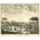 Peking. "The Welkoming dor by the Lipu half an hower without the Towne Pecking. Welkomst door de Lipu een half uur buijten Pecking". Původní mědirytina z: A. Montanus, "De Wonderen van ´t Oosten", Amsterdam, 1655. S mnoha figurami v popředí, městem Peking v pozadí a holandsko-anglickými vysvětlivkami (A.-G.) pod obrázkem. 29,5:35,5 cm.