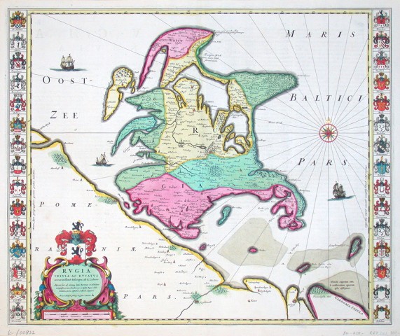 Koeman II, Map 2192:2B, Ed. 2:601 (1662ff. Latin) - Krásná, vzácná (jen v Atlasu Maior) mapa Rujány.