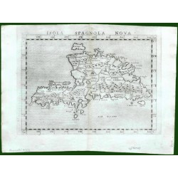 Hispaniola (Haiti/Dominikanische Republik) und Martinique. "Isola Spagnola Nova". Orig. copper-engraving from G. Ruscelli's edition of Ptolemy's Geography. Published in Venice by G. Ziletti, 1562. With title above the map. 18,5:24,5 cm.