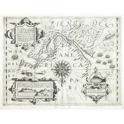 Magellanstraße. "Freti Magellanici ac novi Freti ...". Orig. Kupferstich Karte, H. Hondius, 1630. Mit ornament. Titelkart. 39:50 cm.