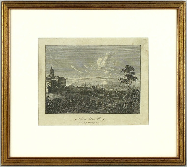 Pluth, Kašpar. Praha. "1te Ansicht von Prag vom Stift Strahof aus". Původní mědirytina, Praha, Hyllos (C. E. Rainold), ca. 1820. 15:17,5 cm.