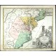 A decorative map of the eastern part of the USA from Long Island and Philadelphia in the north to the Wilmington city ("Carolina") in the south, Lake Moultrie (? "Apalache Lacus") in the southwest and part of Lake Erie in the northwest. - Nice rich impression. Minor water stains in the lower margins.