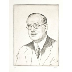Orlik, Emil (1870-1932). "Josef Grünberg" (portrait - facing left). Orig. eching, ca. 1920. Signed in pencil under the desk on the right. 21,8:15,8 cm (printed on laid paper sized 28,5:19 cm).