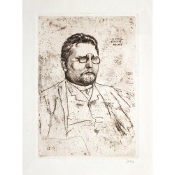 Orlik, Emil. "Max Slevogt 50 Jahre alt". Kaltnagel Rad., 1917. Mit gest. Titel und dat. ("1. III. 1917"). Bleistift Sign. unten rechts und num. 12/30 unten links. 26,8:18,5 cm (Blattgrösse 35,5:25 cm).