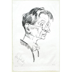Orlik, Emil (1870-1932). "Alexander von Zemlinsky" (portrait - facing right). Orig. lithograph, ca. 1920. Signed and numbered (V/30) in pencil at the bottom. With Zemlinsky's handwritten signature in pencil in the lower left corner. 26:17 cm (printed on laid paper sized 32,5:22 cm).
