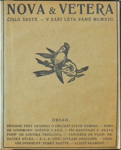 "Nova et vetera", čís. 6. Osvětimany: A. L. Stříž, září 1913. Tisk Kryl a Scotti v Novém Jičíně. 12°. Ca. 80 str. - každý příspěvek stránkován zvlášť, 8 listů pramenů. Se dvěma obrázky. Dobová poloperg. vazba. Pův. obálka vevázána.