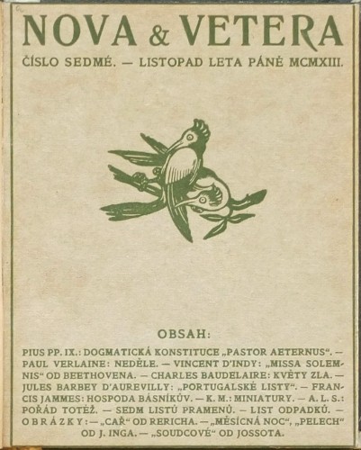 "Nova et vetera", čís. 7. Osvětimany: A. L. Stříž, listopad 1913. Tisk Kryl a Scotti v Novém Jičíně. 12°. Ca. 100 str. - každý příspěvek stránkován zvlášť, 7 listů Pramenů, 1 list Odpadků. Se čtyřmi obrázky. Dobová poloperg. vazba. Pův. obálka vevázána.
