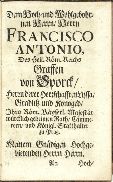Kuks. Lange, Christian Gottlieb. "Der so Alte als Edle Kuckus-Brunn, Welcher in Böheim, auf der Hoch-Reichs-Gräfflichen Sporckischen Herrschafft Gradlitz, aus einem mit den kräfftigsten Mineralien erfüllten Berge entspringet: Von seiner unvergleichlichen Krafft und Würckung, in Heilung allerley Kranckheiten und Gebrechen, auch unterschiedenen andern Curiositaeten. Nach Herrn Carl Valentin Kirchmeyern ... noch ferner recommendiret Von Christian Gottlieb Langen". Jelenia Góra (Hirschberg): Krahen, 1720. 12°. 80, (1) str. Na str. (3) dedikace Františku Antonínu hrabětí Šporkovi. Dobová papírová vazba.