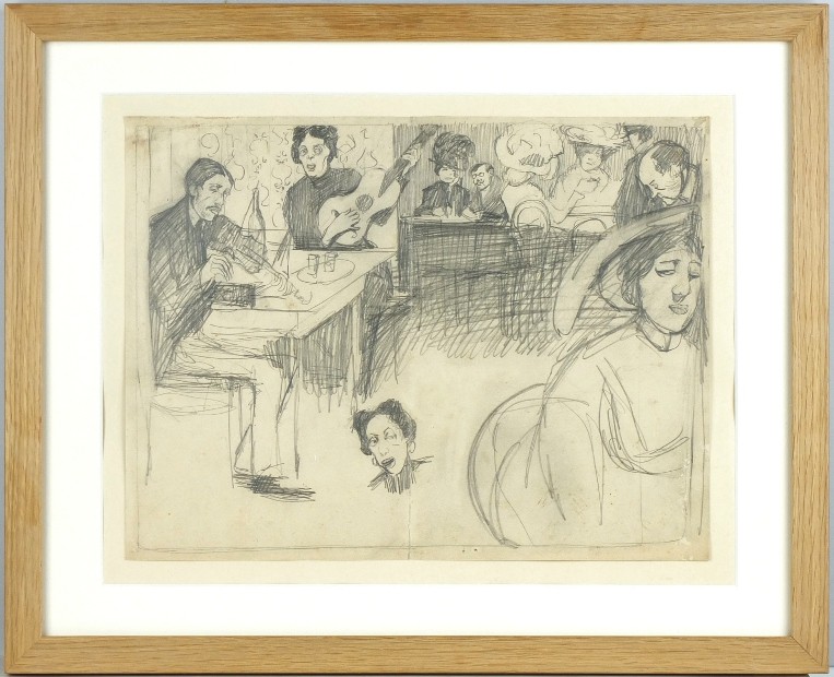Wierer, Alois. Původní kresba tužkou (1908-9) - studie k ilustraci pro Vilímkovo vydání Zolova románu Zabiják (1909). Na rubu přípis 'Zola - Zabiják'. 23,5:31 cm.