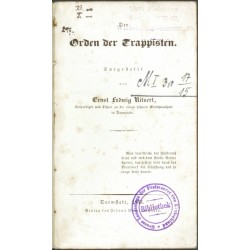 Ritsert, Ernst Ludwig (1800-1843). "Der Orden der Trappisten". Darmstadt: Heyer, 1833. Small 8vo. XIX, (1), 360 pp. Paper binding from the time.