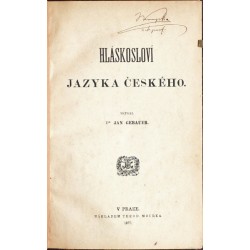 Gebauer, Jan. "Hláskosloví jazyka českého". Praha: nákladem Theod. Mourka, 1877. 1. vyd. 8°. (4), 156, (3) str. Dobová polopl. převazba.
