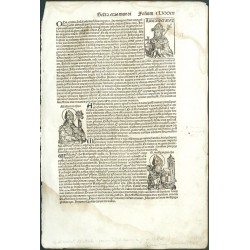 Schedel, Hartmann (1440-1514). "Folium CXVI" from his Liber Chronicarum (also Nuremberg Chronicle). Published by A. Koberger in Nuremberg, 1493. With a total of 12 woodcuts (ca. 1st half of the 3rd century) by M. Wolgemut. A leaf 46:31 cm.