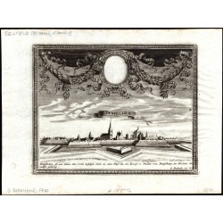 Benfeld. "Benfelden". Orig. copperplate engraving, G. Bodenehr, Augsburg, ca. 1720. A view of the city with decorative border with blank shield, a title and explanatory notes under the pictuer. 15,5:19,5 cm.