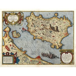 Ischia. "Ischia Insula". Orig. copper-engraving from the German edition of A. Ortelius' Epitome ("Außzug auß des ... Ortely Theatro Orbis"). Published by L. Hulsius in Frankfurt am Main, 1604. With ornamental title-cartouche, the scale of map...