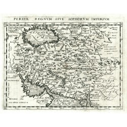 Iran. "Persiae Regnum Sive Sophorum Imperium". Orig. copperplate engraving from G. Magini's 'Geographiae Universae'. Engraved by G. Porro. Published by P. Keschedt in Cologne, 1597. 12,5:17 cm.