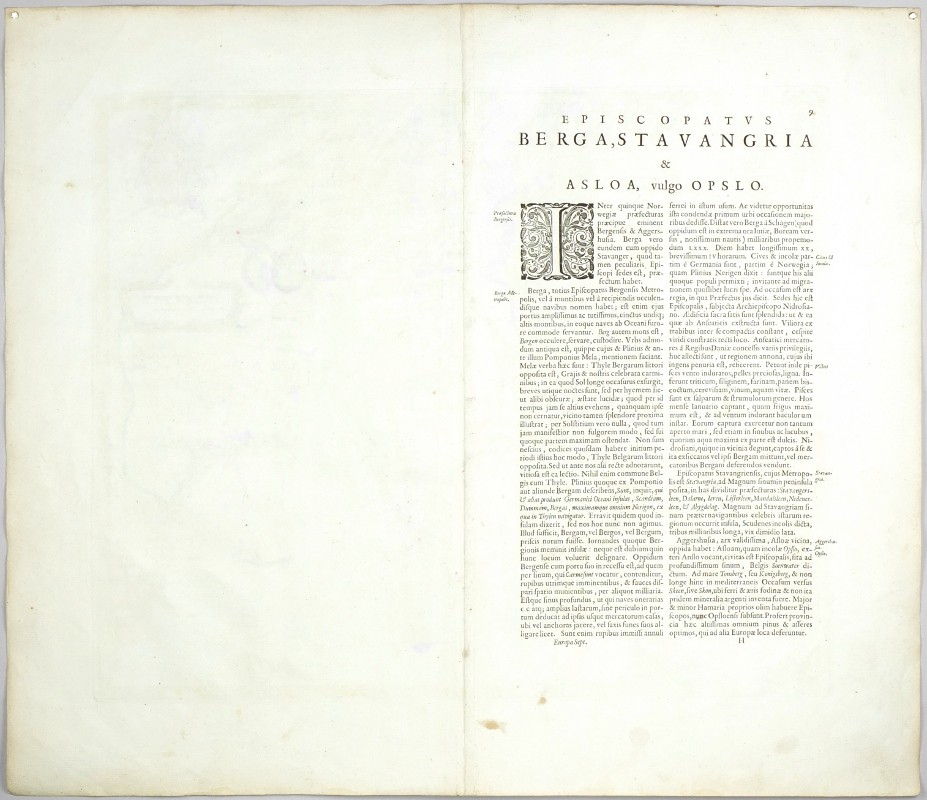 Koeman II, map 1310:2, ed. 2:10A (1640 Latin Appendix). - Map of southern Norway - with the cities of Oslo (right) and Stavanger and Bergen (left).