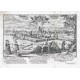 "Franckfurt am Mayn". Orig. Kupferstich. Signiert mit einem Monogramm ("FS" oder "TS") unten rechts. Mit gest. Titel, 3 von Putten gehaltenen Wappen, 3 Figuren vorne und dem Text unten (sign. "Iohann Ieepius"). 14:20 cm.
