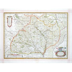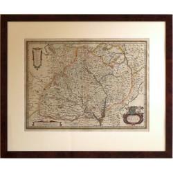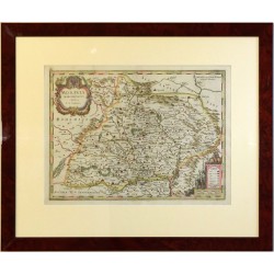 Komenského mapa Moravy. "Moraviae nova et post omnes priores accuratissima delineatio. Auctore I. A. Comenio". Původní, staře kolorovaný mědiryt, 1627. Vydal N. Visscher v Amsterdamu, ca. 1680. 44,5:55 cm.