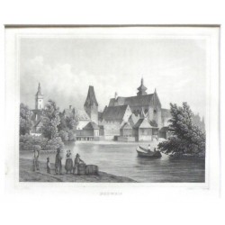 Cheb. "Schloss Eger". Původní ocelorytina z W. A. Gerle: Bilder aus Böhmens Vorzeit. Podle C. Würbsovy kresby ryl E. E. Höfer. Vyd. G. Haase Söhne v Praze, 1842. S rybáři v popředí a něm titulem pod obrázkem. 10,5:15,8 cm.
