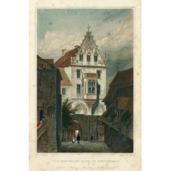 Kutná Hora. "Das steinerne Haus in Kuttenberg". Původní, kolorovaná ocelorytina. Podle C. Würbsovy kresby ryl J. Poppel, vyd. G. G. Lange v Darmstadtu, 1842. 16,5:11 cm.