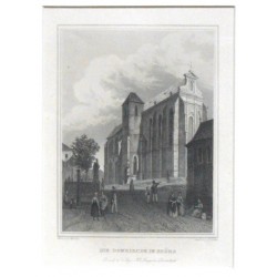 Kolín. Chrám svatého Bartoloměje. "Die St. Bartholomaeuskirche in Kollin". Pův. ocelorytina. Podle C. Würbsovy kresby ryl J. Poppel. Vyd. G. G. Lange v Darmstadtu, 1842. 10,5:15,5 cm.