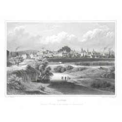 České Budějovice. "Budweis". Pův. oceloryt. Podle C. Würbsovy kresby ryl J. Umbach. Vyd. G. G. Lange v Darmstadtu, ca. 1840. S figurami v popředí. 12:15 cm (rytina).