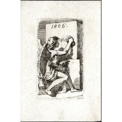Bergler, Josef (1753-1829). New Year's card for the year 1806. Orig. etching, 1805. 9,1:5,3 cm. Typographically signed at the bottom in the desk. Printed on paper sized 13,8:9,3 cm.