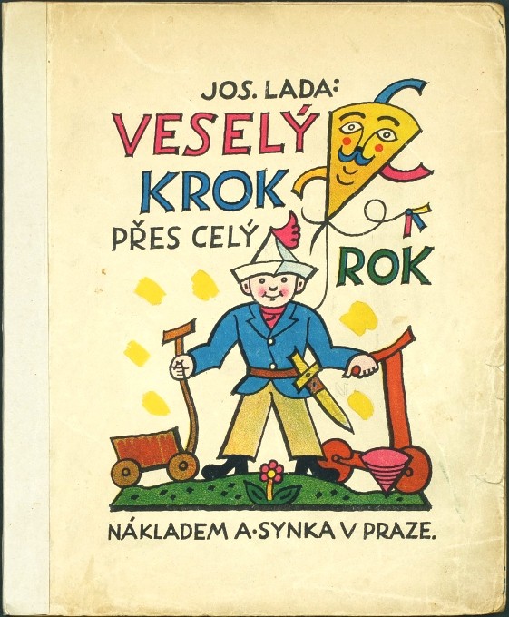 Lada, Josef (1887-1957). "Veselý krok přes celý rok". Verše A. Morávek. Praha: A. Synek, 1929. 1. vyd. Obálka, (44) str. s 23 barevnými ilustracemi (litograficky vybarvené zinkografie) - vše Lada. OIlBrož. (27x22 cm).