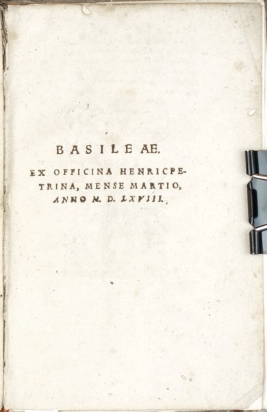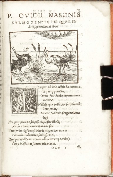 Ovidius Naso, Publius (Ovid; 43 BC - 17/18 AD). "P. Ovidii Nasonis Amatoria". Basel: Heinrich Petri, 1568. 16mo. (8) ll., 586 (=590), (2) pp. with many woodblock initials, illustrations in text and publisher's sign at the end. Orig. embossed full-leather binding from the time.