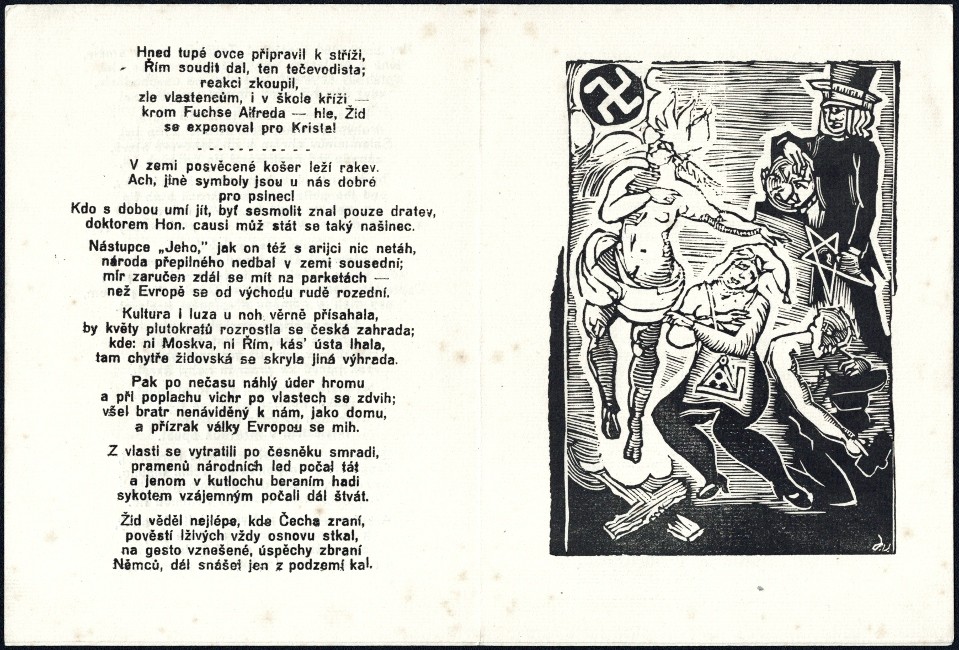 M. Rakušanová: Josef Váchal. Napsal, vyryl, vytiskll a svázal. Praha: Arbor vitae, 2014. Čís. soup. A 86-87. - Protektorátní Váchalův text. Obě rýmování (vše). - Velmi dobře zachováno.