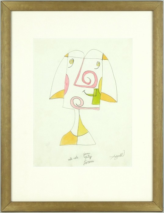 Seydl, Zdenek. "Vole vole, jsem opilej jarem". Původní kresba tužkou a akvarel, 60. léta. Popsáno a signováno tužkou pod obrázkem. 26,5:20 cm (výřez pasparty).