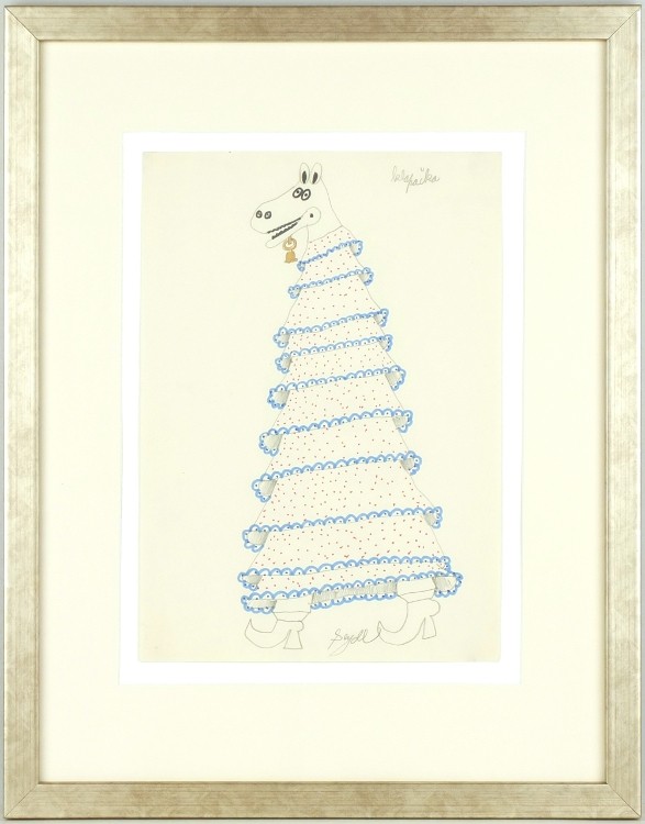 Seydl, Zdenek. "Klapačka". Původní kresba tužkou a fixem, 60. léta. Tužkou popsáno vpravo nahoře a signováno dole uprostřed. Na papíře o rozměrech 29,5:21 cm.