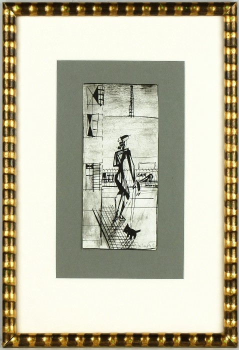 Matal, Bohumír. Dáma se psem. Původní kresba tuší, 1945. Signováno a datováno tužkou vpravo dole. 19:8,5 cm.