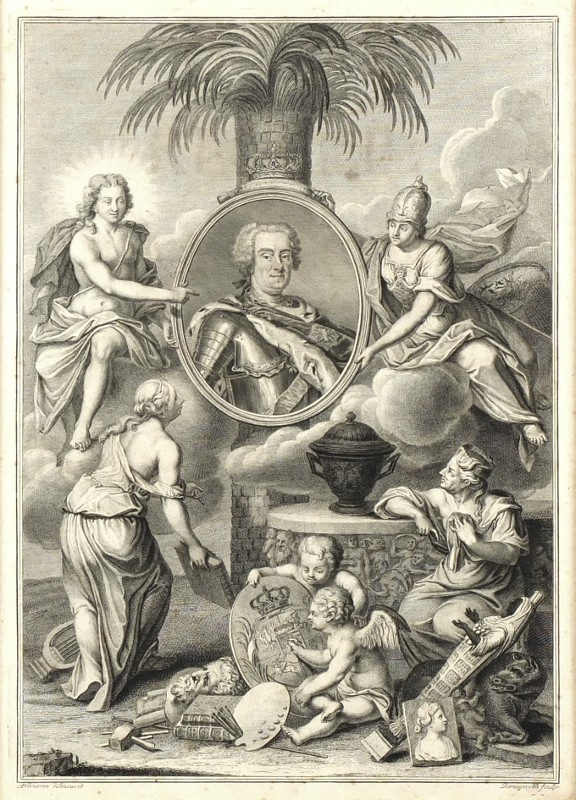 Bernigeroth, Martin. Augustus II the Strong - portrait. Orig. copperplate engraving by M. Bernigeroth after A. M. Werner's drawing, ca. 1740. 42:29,5 cm (16 1/2 x 11 3/4 inch.).